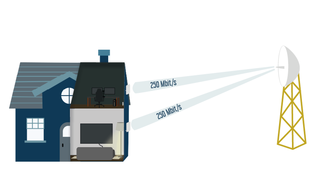 Med 8XG Multi-abonnemangen får du 2 anslutningar till priset av 1. Där varje anslutning består av 200 Mbit/s eller 250 Mbit/s. Du får alltså 2 st fristående installationer på din fastighet, detta innebär alltså att fastigheten får 2 mottagare och 2 avlämningspunkter/routers för att distrubera bredbandet vidare. Du kan då välja att göra båda installationerna direkt på ditt bostadshus, eller göra den ena på bostadshuset och den andra på garaget exmpelvis.