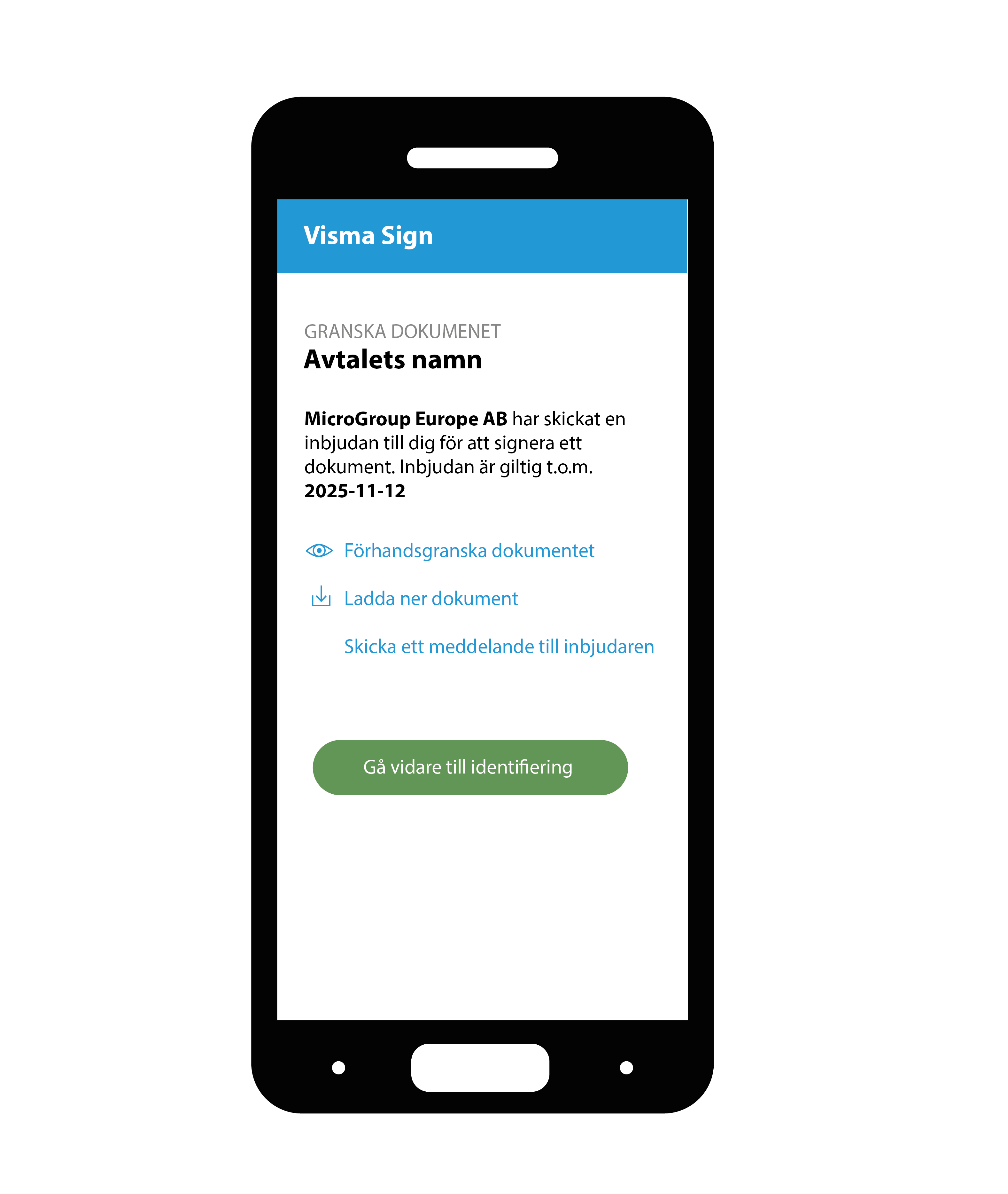 Vanligtvis får ni inbjudan per SMS från Visma Sign.